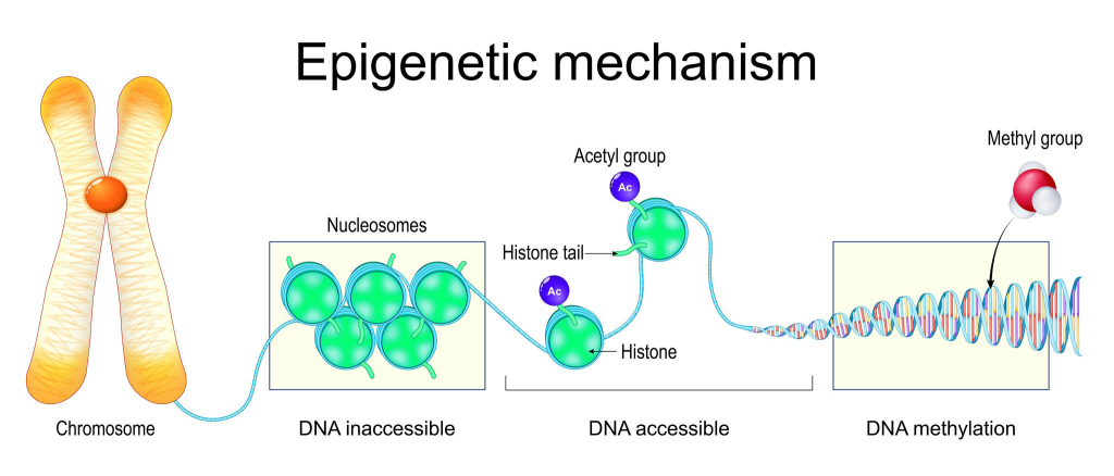 - DNA Metilasyonu: En yaygın mekanizma, genin promotör bölgesindeki sitozin Nükleotid gruplarına bir metil grubu eklenmesidir. Genellikle, metilasyon genin susturulmasına (kapanmasına) neden olur.